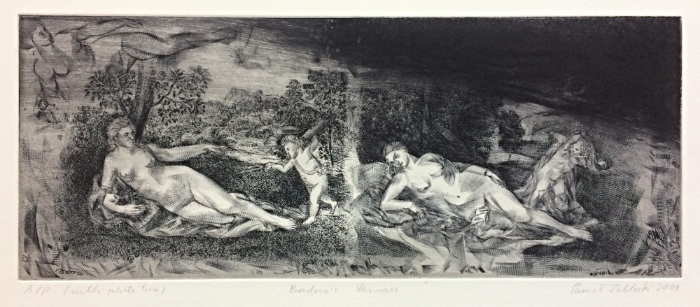 Powrót do: OfertaGrafikaZABŁOCKI PawełBordone's VenusesRok powstania: 2009Technika: akwaforta, papierWymiary: 15x38 cmNr odbitki: odbitka autorskaZapytaj o tę grafikęcena:450zł+ Wybór