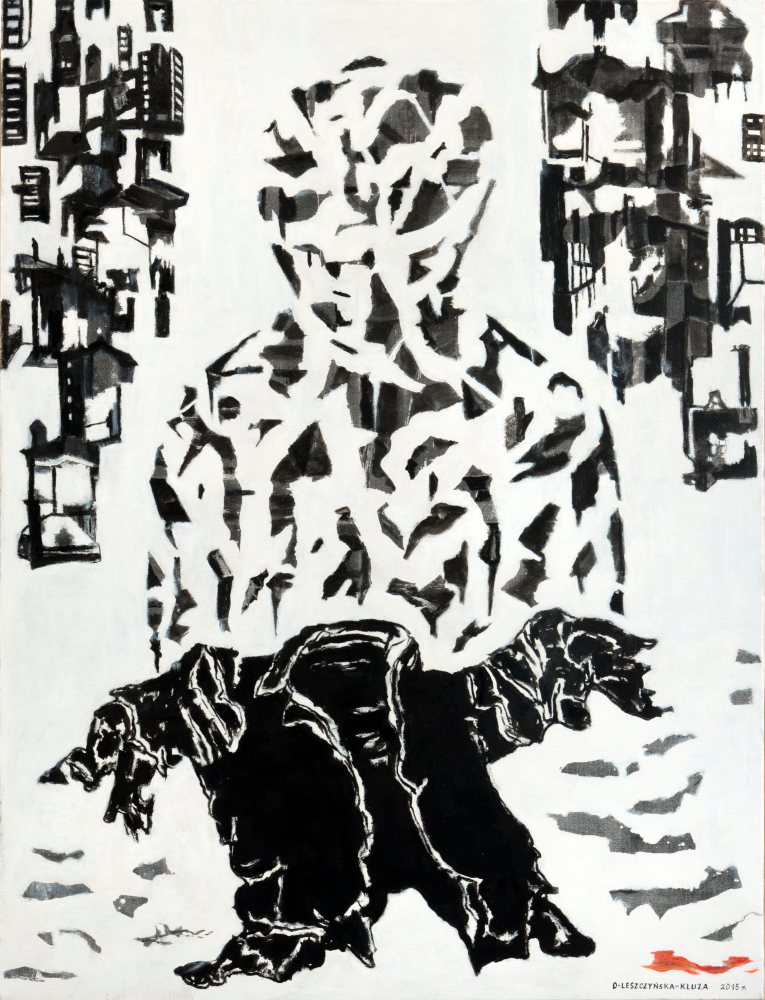 Sztukę Danuty Leszczyńskiej-Kluza, zawsze niezwykle osobistą, cechuje emocjonalne przeżywanie rzeczywistości, głębia doznań i nieustanne dążenie do artystycznego ideału. Wyrasta ona z uważnej obserwacji tego, co ogólne i tego, co najbliższe. Doznania, emocje i spostrzeżenia poddane refleksji, skumulowane i nawarstwione, powodują, że prawie każde dzieło odbieramy jako wielowątkową złożoność. Wielowątkowość przesłania Artystki, zawartego w obrazach, rysunkach i grafikach, mimo że poddana rygorowi i precyzji wizualnej artykulacji – stwarza dystans i powoduje powstrzymanie się od pospiesznej interpretacji. Skomplikowany, bardzo indywidualny język wizualny, który Danuta Leszczyńska-Kluza wypracowała kształtując swą wizję artystyczną, złożony ze znaków i symboli, których desygnaty są trudne do odkrycia i zlokalizowania, powoduje, że jesteśmy często bezradni i zdani na sugestie obecne w tytułach cykli, czy poszczególnych prac, a często wyłączniena intuicyjny odbiór zawartych w jej dziełach przekazów…
