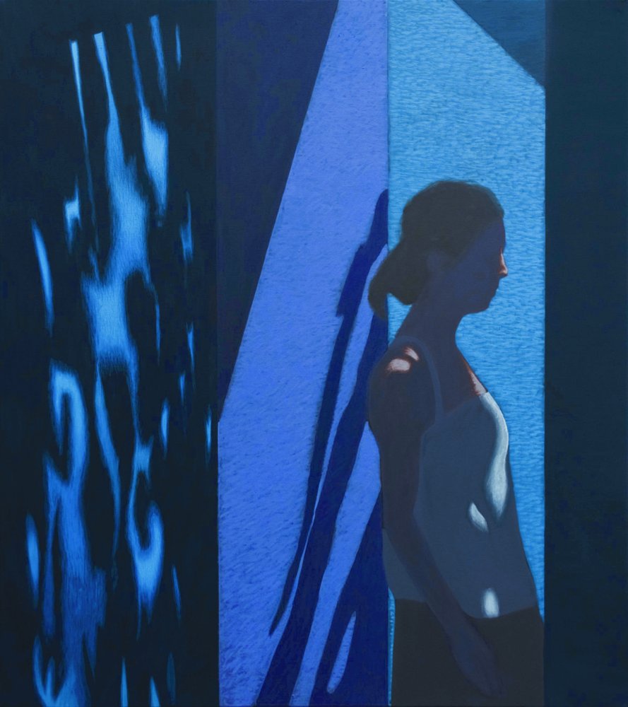 (..).Granica między światłem i cieniem jest jednym z najważniejszych wyróżników w malarstwie Dariusza Milczarka (…) Swoje kompozycje kreuje bazując na wykonanych przez siebie zdjęciach. Zaskakująca jest deklaracja autora gdy w fotografii widzi „możliwość zwolnienia tempa, zatrzymania zmienności”, co poza oczywistymi funkcjami tego medium i szaleńczego dynamizmu obrazowania zapowiada refleksyjność, zastanowienie, nawet kontemplację. W tej deklaracji posuwa się jeszcze dalej, bo przy dużej wiedzy, świadomości czym jest dla niego fotografia, jaki jest jej potencjał i możliwości totalnego działania, opowiada się za malarstwem jako medium dla siebie najważniejszym. Malarstwo według niego daje nieograniczoną swobodę wypowiedzi, wolność. Taka postawa jest wbrew powszechnym tendencjom, modom i godna szacunku, tym bardziej, że to świadoma decyzja, bezkompromisowa na rzecz jakże ważnej, kto wie czy nie najważniejszej wartości jaką jest bezinteresowne wypowiedzenie własnej prawdy o sobie i świecie, tu za pomocą malarstwa. Ważne więc jest to „jak” mówi, jak maluje. Widzi w malarstwie niewyczerpane możliwości wyrazowe, znaczeniowe i właśnie głównie językowe. A język wypowiedzi malarza jest niepowtarzalny, jedyny i on tak naprawdę powołuje do istnienia na nowym malarskim gruncie osobne istnienie człowieka, malarza. A cóż to oznacza innego jak nie pamięć, pamięć jednostkową, prawdę która porusza się pośród uniwersów ludzkich i buduje wspólne uniwersum. Są to być może pewne oczywistości, ale warto je przywoływać. Jedną z najważniejszych form wyrazowych języka malarskiego jest kolor. W fotografii jest on w pewnym stopniu imitacją, natomiast w malarstwie bardziej osobisty, własny, gdyż widzenie wynika z bezpośredniego przeżycia emocjonalnego. Kolor jest możliwością indywidualną nawet gdy zbliżony do drugiego, tworzy to jednak niepowtarzalny zestaw, temperaturowy układ, nasycenie, dźwięk, bowiem każdy człowiek ma inne poczucie koloru. Inną cechą języka malarskiego poza kolorem jest cała sfera strukturalna obrazu. Faktura obrazu buduje się za każdym razem osobno, jednorazowo. Autor postanawia malować na czarnych tłach. To co powstaje na obrazach jakby było następstwem działań w mrocznym fotograficznym laboratorium, tyle że przy użyciu odmiennej techniki, tempery żółtkowej. Technika temperowa przy swojej niepowtarzalnej strukturze powierzchni, maty, drobna tkanka pociągnięć pędzlem, umożliwia w miarę długą kontrolę nad malowanym obrazem, pozwala zastanowić się pozostawiając niejako w gotowości sferę wyrazową, nastrojową, a ta jest ostatecznie zbudowana niepowtarzalnie. Na czerni toczy się gra w przewadze błękitów o różnym nasyceniu, fioletów, zgaszonych zieleni, brązów, chłodnych szarości pomiędzy akcentami niemal czystej żółci, niekiedy jasnego kobaltu, skrawka czerwieni, oranżu czy rozjaśnionej sieny. Owe nasycone akcenty spinają, potęgują zanurzenie w cieniu. Są wśród tych prac również stonowane, w których zjawiskowość kształtów cienia jest głównym wystarczającym wątkiem. Zjawiskowość działania jest tu podstawowym pierwszym wrażeniem, czyli to co jest istotą malarstwa jako takiego. U Dariusza Milczarka tematyka wyłania się dzięki fotografii. Są to kompozycje figuralne, portrety, człowiek we wnętrzu, postać w codzienności otoczenia i przede wszystkim cień, który żyje dzięki światłu. Wprawdzie są to malowane konkrety, momentami łatwo rozpoznawalne, jednak większość nie jest wprost, ale ukryta. Bohaterem obrazów w gruncie rzeczy jest graniczność, to co między konkretem a abstrakcją, miedzy jasnością światła a zanurzeniem w cieniu ustanawiane harmonijnie, oszczędnie przy pomocy ciekawej, charakterystycznej dla tempery struktury powierzchni. Owa graniczność, odrealnienie w warstwie strukturalnej, gra pomiędzy światłem i mrokiem, czarne tło, próbują wyrazić tajemnicę świata bliskiego. Zanikanie w mroku portretowanej twarzy, wibracje cienia, witrażowa tafla, zanikanie postaci we wnętrzach jest zwróceniem uwagi na proces, na chwilowość zjawisk życia, w którym malarstwo tą efemeryczność monumentalizuje, zatrzymuje. Fotografia, zwłaszcza wizerunków człowieka, zanim totalnie się rozprzestrzeniła, była czymś odświętnym, posiadała cechy wyjątkowości. Sadzę, że to potrzeba wyjątkowości chwili, wyjątkowości zdarzenia skłania autora do malowania, do uprawiania tego rodzaju sztuki, bo przewrotnie malarstwo obecnie jest świętem. W wyjątkowym malarskim medium powstaje tu połączenie tego, co fotografia swoją zewnętrznością sugeruje, z tym co jest autora własną świata interpretacją. Półmrok, cień i jasność światła, jedność przeciwieństw, dotyk obiektywności piękna.(...)