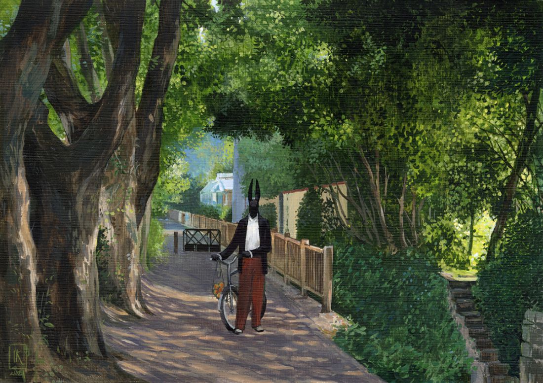 Wystawa "Późne lato" to kolejna odsłona przygód Anubisa, bohatera malarskiego cyklu Joanny Karpowicz. Na 27 pracach na papierze i 5 na płótnie zobaczymy Anubisa w scenerii francuskiej Walencji. Jak zwykle, malarka zaczerpnęła motywy do swoich prac z miejsc autentycznych, pokazując Anubisa w miejskich zaułkach i parkach. Tytuł umiejscawia obrazy w czasie, ma też znaczenie symboliczne - późne lato jest piękne, bywa jednak, że wywołuje u nas niedookreślony smutek.