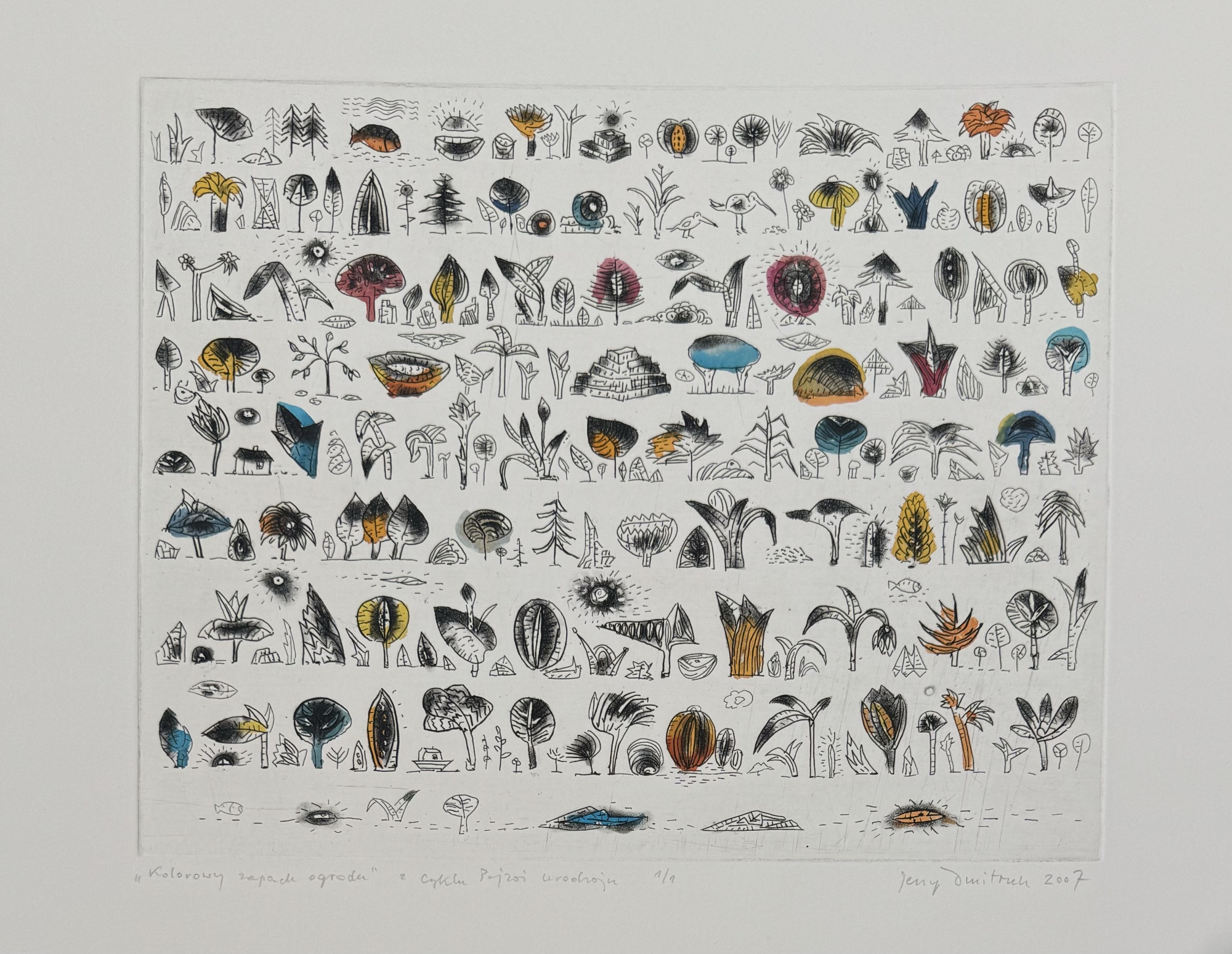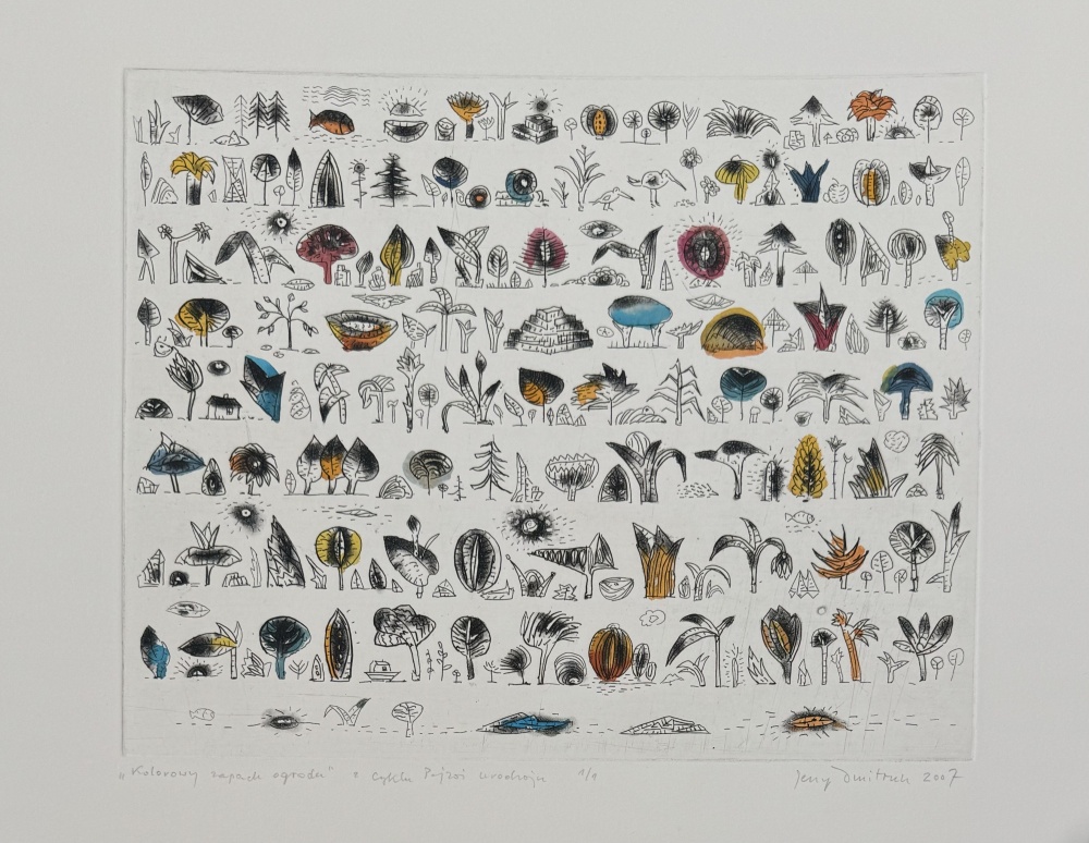 Powrót do: OfertaGrafikaDMITRUK JerzyKolorowy zapach ogroduRok powstania: 2007Technika: akwaforta, akwarela, papierWymiary: 21,5x27,5 cmNr odbitki: 1/1Zapytaj o tę grafikęcena:1 250zł+ Wybór