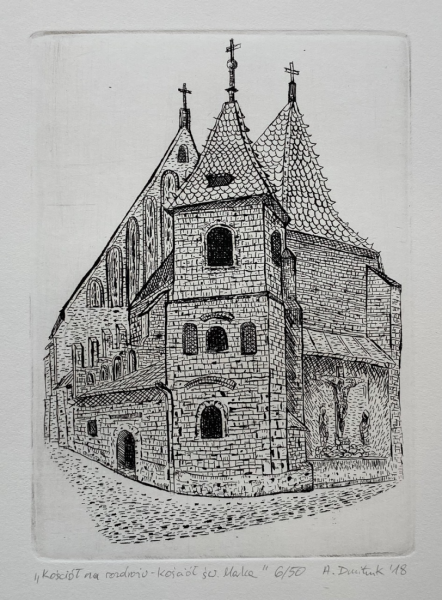 Powrót do: OfertaGrafikaDMITRUK AleksanderKościół na rozdrożu - kościół Św. MarkaRok powstania: 2018Technika: akwaforta, papierWymiary: 16x12 cmNr odbitki: 6/50Zapytaj o tę grafikęcena:480zł+ Wybór