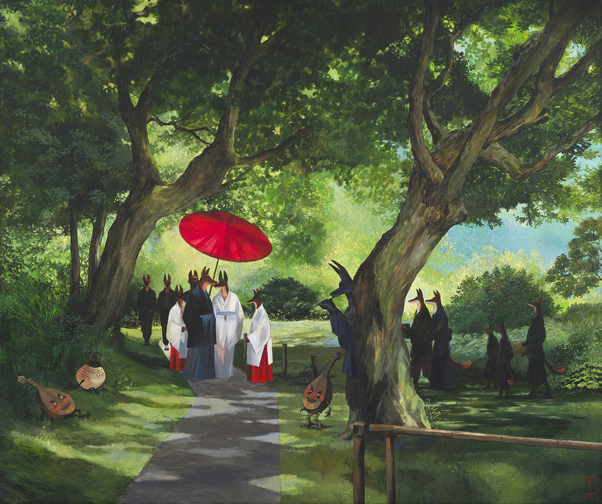 Wystawa, której otwarcie już w czwartek 9 października o godzinie 18.00, jest kontynuacją cyklu inspirowanego Japonią. Pierwsza odsłona, “Anubis i Yōkai” miała miejsce w 2022 roku. Były to w przeważającej części prace na papierze. Nowa ekspozycja cyklu to 16 prac na płótnach, malowanych techniką akrylową.
