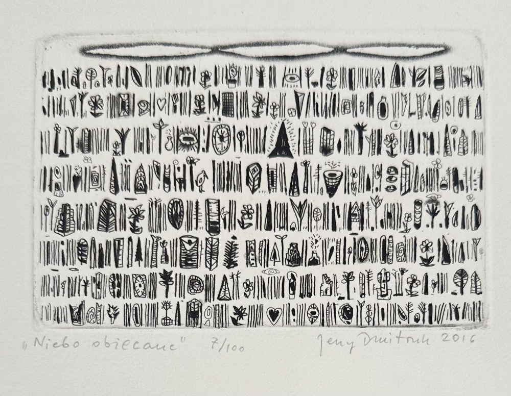 Powrót do: OfertaGrafikaDMITRUK JerzyNiebo obiecaneRok powstania: 2016Technika: akwaforta, papierWymiary: 8x12,3 cmNr odbitki: 7/100Zapytaj o tę grafikęcena:350zł+ Wybór