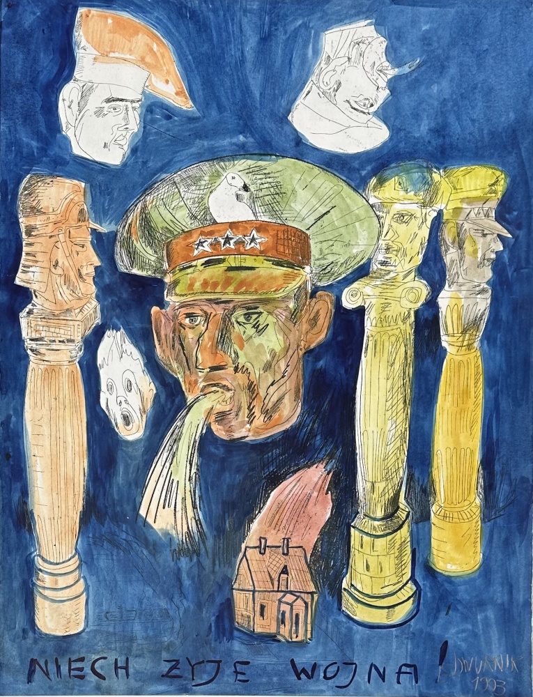 Powrót do: OfertaMalarstwoDWURNIK EdwardNiech żyje wojnaRok powstania: 1993Technika: akwarela, sucha igła, papierWymiary: 64x48,5 cmZapytaj o ten obrazcena:28 000zł+ Wybór