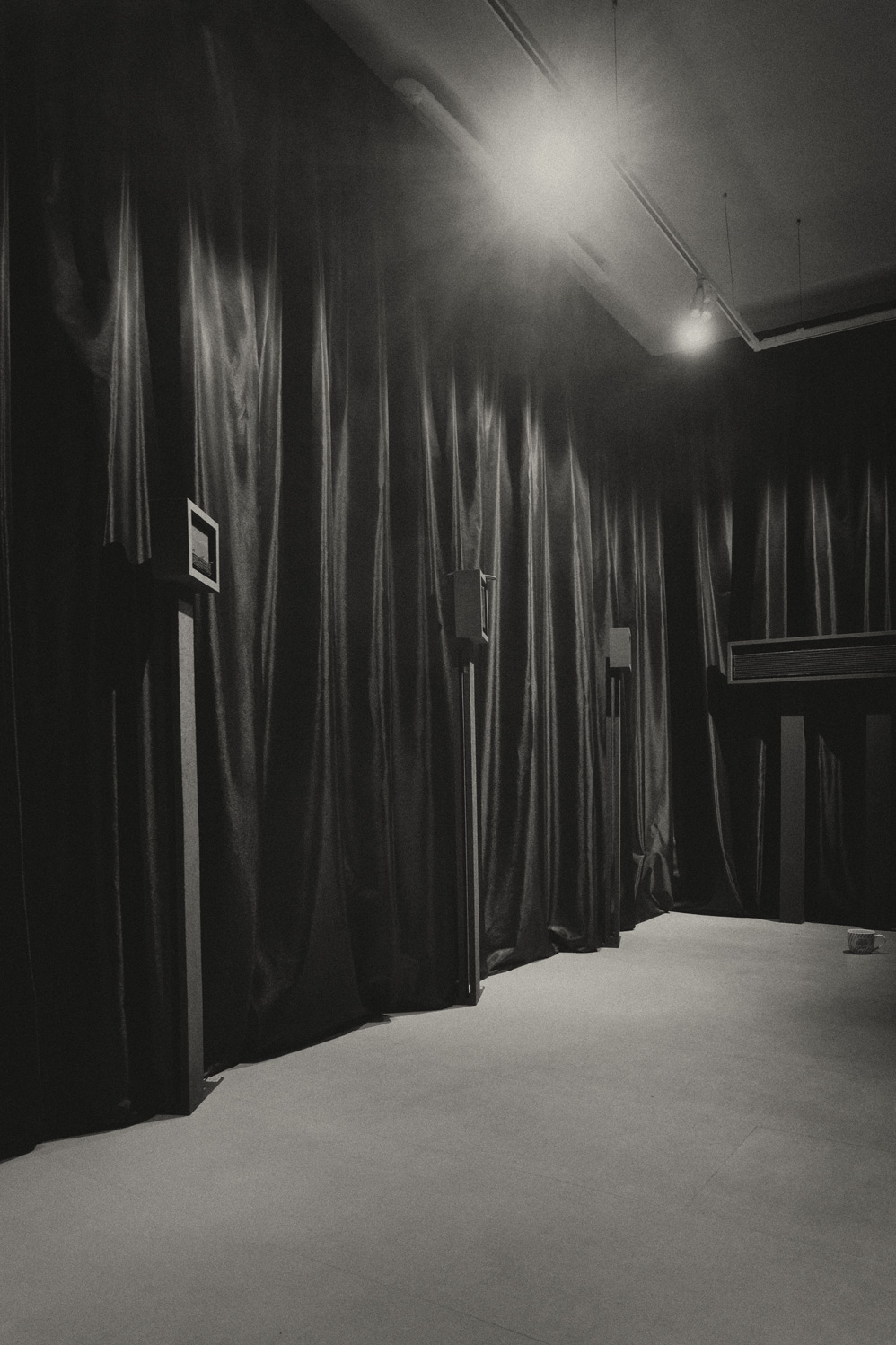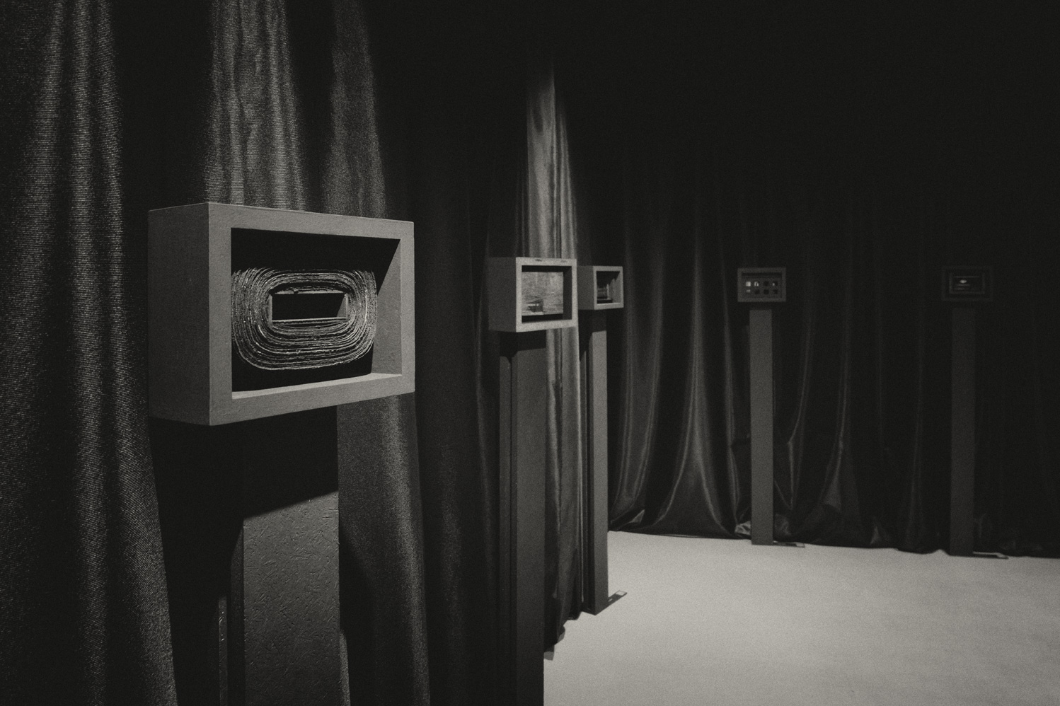 …Rafała Pytla znamy przede wszystkim jako grafika, który osiągnął mistrzostwo w dziedzinie druku wypukłego jakim jest linoryt, ale to artysta interdyscyplinarny, który zajmuje się także malarstwem, tworzy książki artystyczne, obiekty przestrzenne oraz reliefy. Drukując swoje grafiki wykonuje dużo odbitek próbnych, zużywając mnóstwo papieru. I to właśnie papier rosaspina fabriano z tych odrzuconych odbitek, na którym odbija grafiki, pierwotnie biały papier nasączony przez niego czarnym tuszem, zmacerowany, stał się materiałem do stworzenia pokazywanych na wystawie czarnych reliefów. Artysta zwykle operuje w swych pracach graficznych czernią farby drukarskiej i bielą papieru, obecnie rezygnuje z jego bieli, czyniąc go czarnym. Wydawać mogłoby się, że to tylko recycling, wykorzystanie papieru z odrzuconych odbitek, ale czarny ma niezwykle silne znaczenie symboliczne, to kolor żałoby. Tych prac w żadnej mierze nie da się sprowadzić tylko do recyclingu, mają one dużo silniejszą wymowę…
