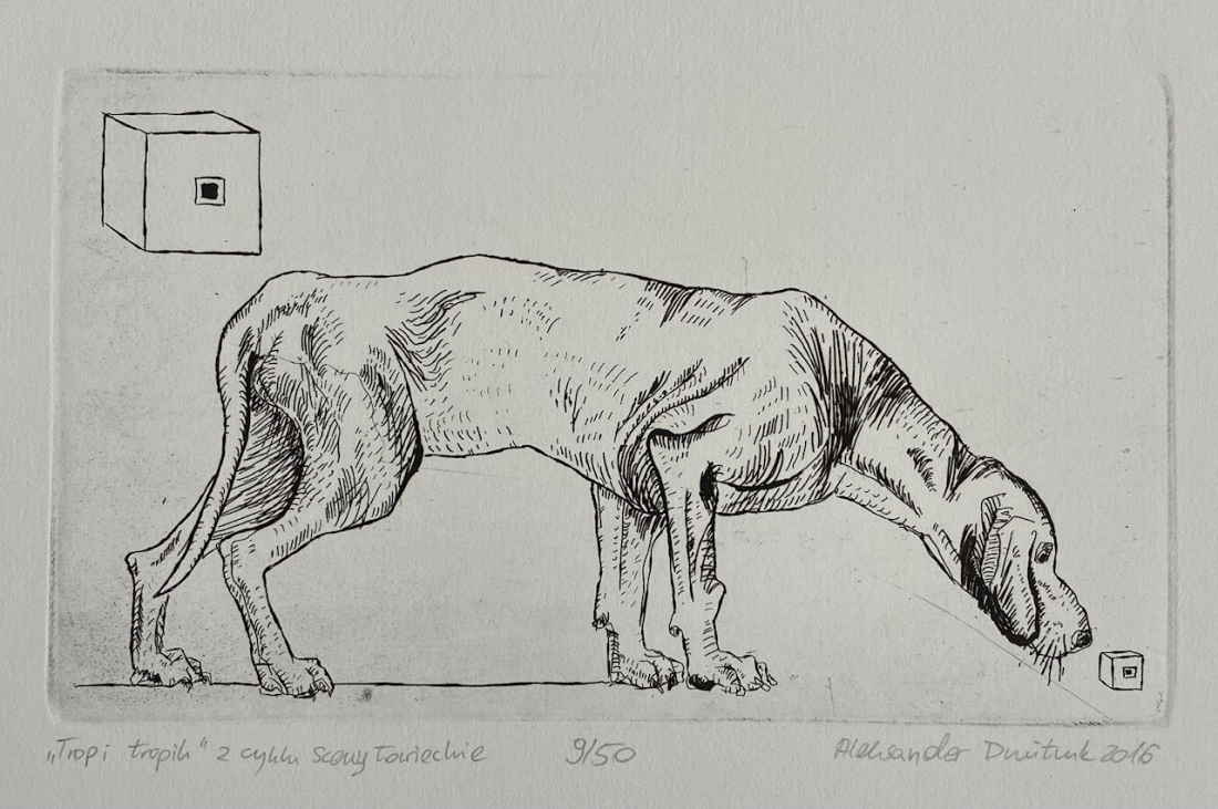 Powrót do: OfertaGrafikaDMITRUK AleksanderTrop i Tropik z cyklu sceny łowieckie Rok powstania: 2016Technika: akwaforta, papierWymiary: 11,5x19,5 cmNr odbitki: 9/50Zapytaj o tę grafikęcena:480zł+ Wybór