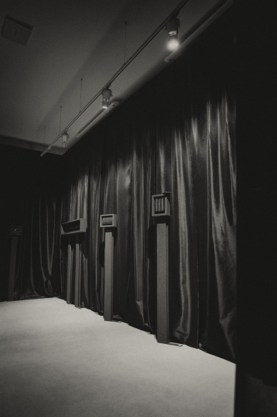 …Rafała Pytla znamy przede wszystkim jako grafika, który osiągnął mistrzostwo w dziedzinie druku wypukłego jakim jest linoryt, ale to artysta interdyscyplinarny, który zajmuje się także malarstwem, tworzy książki artystyczne, obiekty przestrzenne oraz reliefy. Drukując swoje grafiki wykonuje dużo odbitek próbnych, zużywając mnóstwo papieru. I to właśnie papier rosaspina fabriano z tych odrzuconych odbitek, na którym odbija grafiki, pierwotnie biały papier nasączony przez niego czarnym tuszem, zmacerowany, stał się materiałem do stworzenia pokazywanych na wystawie czarnych reliefów. Artysta zwykle operuje w swych pracach graficznych czernią farby drukarskiej i bielą papieru, obecnie rezygnuje z jego bieli, czyniąc go czarnym. Wydawać mogłoby się, że to tylko recycling, wykorzystanie papieru z odrzuconych odbitek, ale czarny ma niezwykle silne znaczenie symboliczne, to kolor żałoby. Tych prac w żadnej mierze nie da się sprowadzić tylko do recyclingu, mają one dużo silniejszą wymowę…